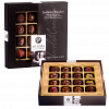 Zutaten: Zucker, Kakaobutter, VOLLMILCHPULVER, SAHNE, Glukosesirup, Kakaomasse, HASELNUSSKERNE, WEIZENMEHL, Vanillelikör, Neutralalkohol, Fruchtsaftkonzentrat von: Himbeeren, Sauerkirschen, Erdbeeren, Brombeeren, Schwarzen Johannisbeeren, Roten Beten, Trauben; Feuchthaltemittel: Sorbitsirup; Glukose-Fruktose-Sirup, Prosecco, Weinbrand, Himbeergeist, Emulgator: Lecithine (SOJA, Sonnenblumen); Moccalikör, Marc de Champagne, natürliches Vanille-Aroma, Säuerungsmittel: Citronensäure; SAHNEPULVER, natürliches Himbeeraroma, Invertzuckersirup, Kaffee, MAGERMILCHPULVER, Bourbon-Vanilleschote, BUTTERREINFETT, Karamellsirup, Geliermittel: Pektin; natürliches schwarzes Johannisbeeraroma, Säureregulator: Kaliumcitrat; Salz, Kakaopulver, Dekor teilweise mit Farbstoffen: Betenrot, Echtes Karmin. Zartbitter-Schokolade Kakao: 60% mindestens, Vollmilch-Schokolade Kakao: 35% mindestens